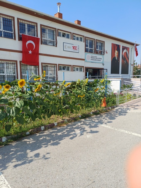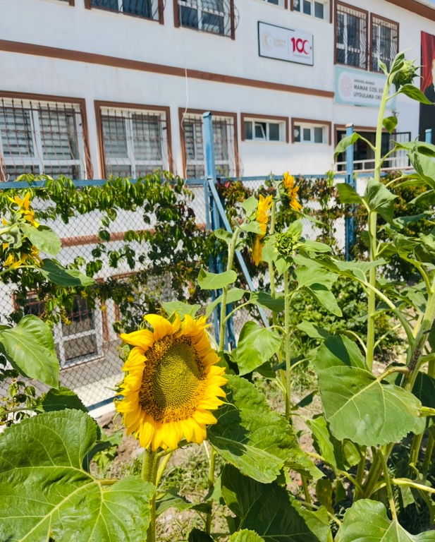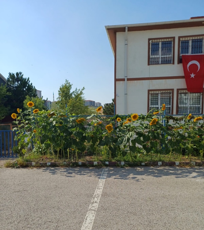 Öğrencilerimizin dikmiş olduğu ayçiçekleri çiçek açarak görülmeye değer bir manzara sergiliyor.